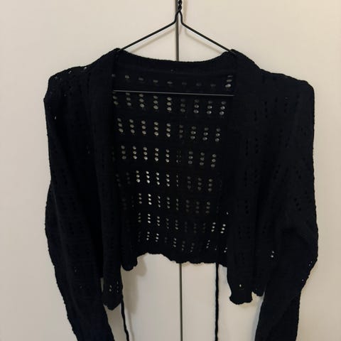 Turhana kaapissa, laput vielä kiinni. Monikäyttöinen musta bolero.