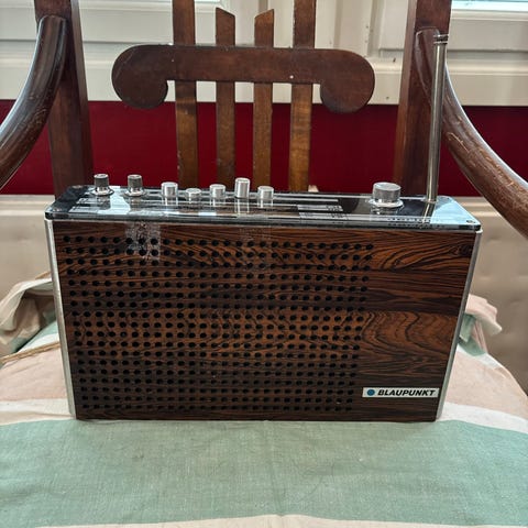 Hienosti soiva 60-luvun radio. Toimii paristoilla, ja ilmeisesti virtakaapelillekin oma liitäntä. Antenni myös ehyt.