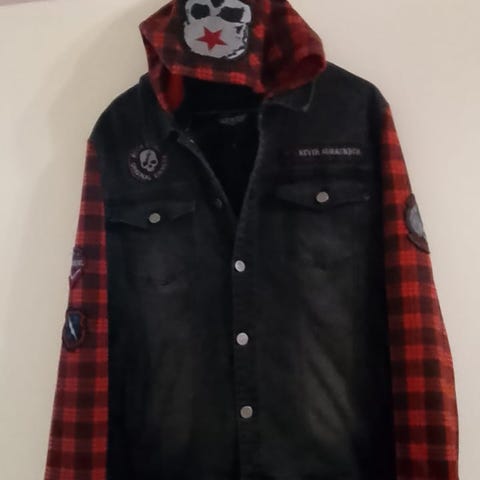 Ostetaan kuvan loose fit farkkutakki. Tai jos sulla on joku saman tyylinen takki, niin tarjoa ihmeessä! Yleensä käytän kokoa L, mutta tämän merkin väljän istuvuuden vaateet ovat tosi isoja.