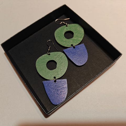 Korvakorut on maalattua koivuvaneria ja koukut terästä, jonka pitäisi sopia myös nikkeliallergikoille.