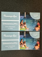 Myydään 2 lasten lippua Flamingo Spa vesipuistoon, 3-9-vuotiaat, ovat voimassa 28.5.2025 asti. Hinta 8€/kpl