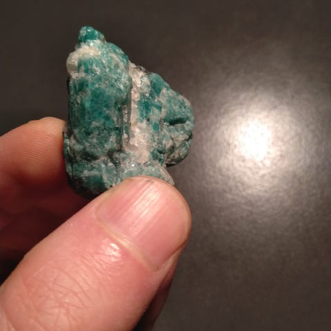 Erittäin lustrous isokokoinen terminoitunut vesimeloni tourmalini, yli kymmenen gramman kristalli. Käsittelemätön täysin luonnollinen mineraali, päältä ja reunoilta voimakkaan krominvihreä, keskeltä vaaleanpunainen.