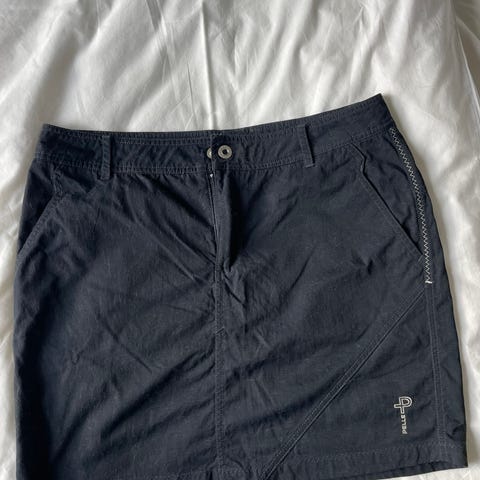 Uusi sebagon hame. Kummallakin sivuilla taskut sekä edessä. Vetoketju edessä ja nyöri vyötäröllä. Väri tummansininen. Farkkumaista kangasta, muttei ihan niin paksua kuin farkkukangas. 100% puuvillaa. Tummansininen. Koko L. Vyötärönympärys 90cm. Helma 57cm. Pituus 43cm. Nouto tai postitus.