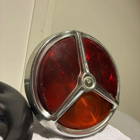 Laatikkomallin Cortinan käytetyt takavalon lasit, ehjän oloiset mutta vaativat vähän putsausta. Kusti polkee tarvittaessa 8,90 hintaan.