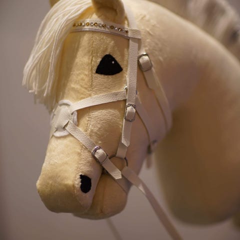 Ompelen tilauksesta kahta eri kokoa keppihevosia ja niiden varusteita.