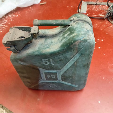 Rekvisiitaksi tai käyttöön USSR jerrykannu. Patinoitunut, mutta ehjä ja toimiva alkuperäisessä käytössä.