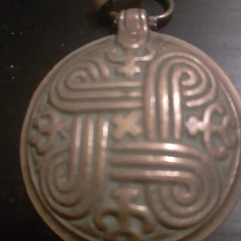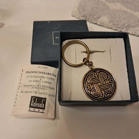 Kiva Kalevala avaimenperä Hannun vaakuna. Takana teksti.