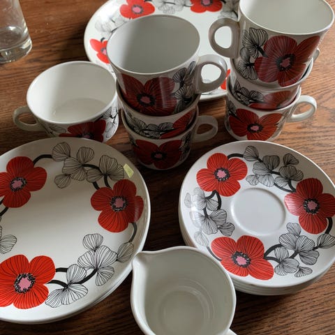 Kuvan mukaiset astiat myynnissä. Hyvässä kunnossa.