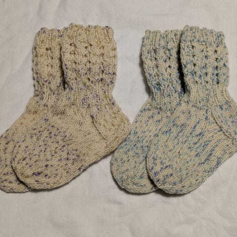 -Kirjavat jalkaterä 14 cm . Hinta 8 e. Villaa75%polyester25%.