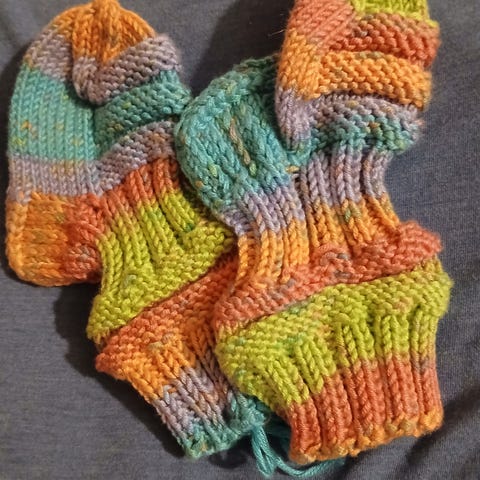 - oranssikirjavat jalkaterä 11,5 cm vauva tumput ei peukkuja , sukat 10 e.