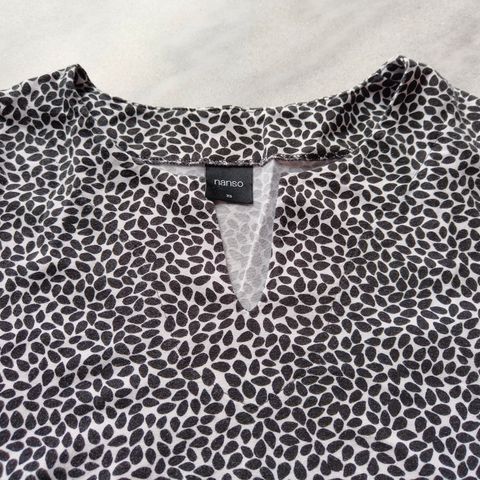 Nanson käyttämätön kukkakuvioinen paita koossa XS. Paidassa venepääntie ja vajaamittaiset hihat. Materiaali 95% puuvillaa ja 5% elastaania.