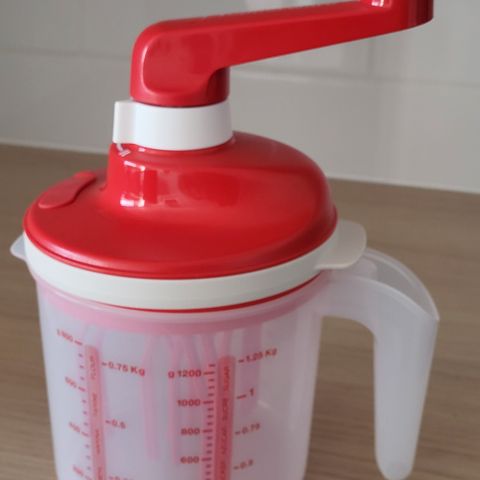 Manauaalinen pilkkoja, kenties Tupperwaren Quick Chef vanhempi malli. Tällä laitteella pystyy pilkkoa ja paloitella koviakin ruokia, esim. porkkanat, suklaat, sipulit jne. Voi sekoittaa taikinan ainekset keskenään vaivattomasti. Laitteen pohjassa liukuestereuna; laitteen kannessa pieni suppilo.