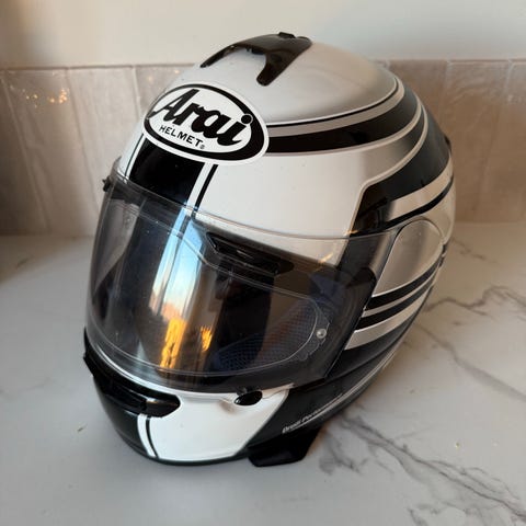 Siitä kypärä. Kaapissa seisonut jokusen vuoden. Upea. On käytetty muutaman vuoden ja tuo kypärän päällä olevan ilma-aukon osa pitää uusia tai ajaa aurinkoisella kelillä.