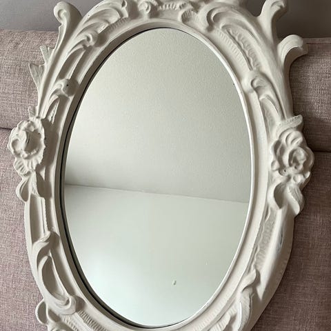 Myydään peili, jossa yksilöllinen takorautainen kehys.
