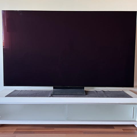 Senkit olleet tv tasona. Toisen taustalevyyn sahattu aukot vahvistimelle, johdoille ja kaapeleille. Toisen taustalevy on ehjä. Senkissä toisella puolella kaksi hyllyä ja toisella puolella yksi.