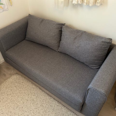 Sohvaan kuuluu kaksi suurta käytännöllistä tyynyä, jotka toimivat selkänojana tai vain sisustus lisänä. Vain 60€. Nouda Espoosta.