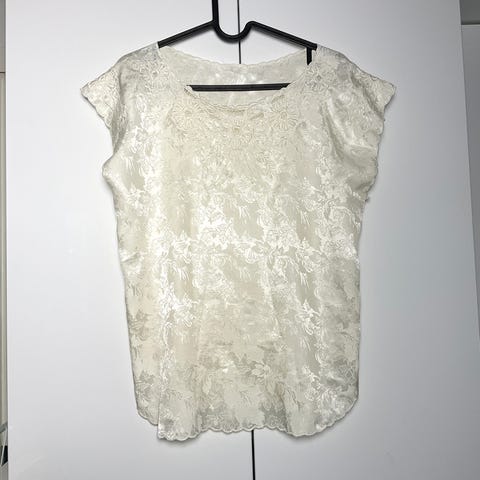 Aitoa vintage-tyyliä, yleisilmeeltään hyvässä kunnossa, katso kuvat. Kuvassa näkyy pieni reikä. Tikkausneula veti pehmusteen lankoja irti ompelun aikana, ne pilkistävät joissakin paikoissa.