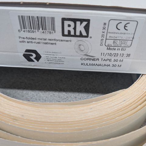 Avattu paketti RK kulmanauhaa jäljellä 20m.