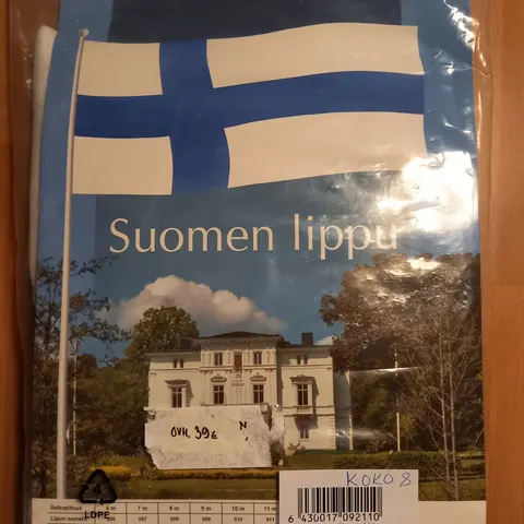 Myydään kuvassa näkyvä pienois Suomen lippu tangossa. Tarjoa!
