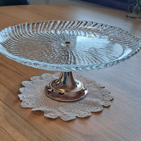 Myydään kuvassa näkyvä lasinen kakku kupu ja lautanen. Hinta:50€