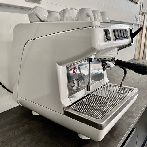 Approximately 20 year old Elektra with powdercoated base and boiler. All new seals installed last year and used sparingly since then. Comes with bottomless portafilter.