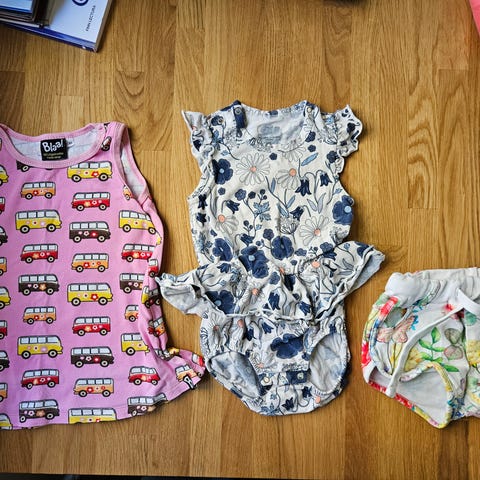 Metsola haalarista on lyhennetty puntit kesäksi. Pikku Myy 80cm, muut 86cm.