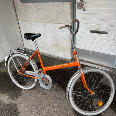 Kohtuukuntoinen, joskin pientä laittoa. Kummatkin renkaat lähes uutta vastaavat. Ilmaa pitää pumpata sillointällöin, en sanoisi päivittäin. Klassikko. Taatusti Ruotsinrautaa.