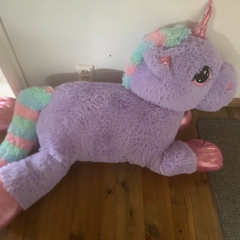 Myydään yksisarvinen jättipehmo. Eläimetön koti.