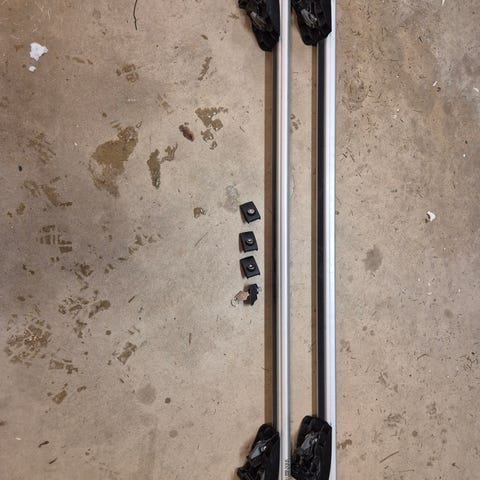 Täydellisesti toimivat, ehkä 10 kertaa käytetyt taakkatelineet. Mukaan myös näiden kiristysavain, joka ei ole kuvassa