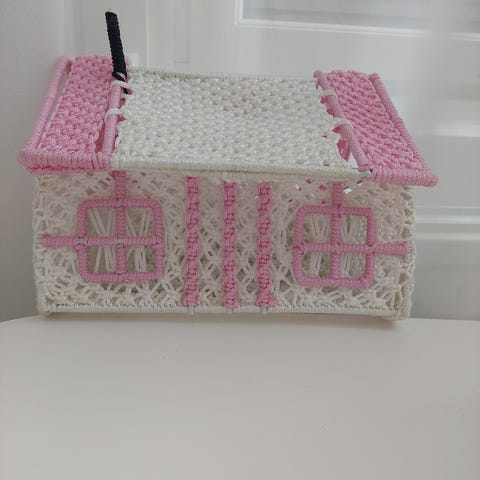 Iso makrame seinävaate. Valkoinen/vaaleanpunainen. Iso.