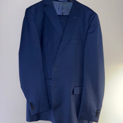 Todella vähän käytetty miesten tumman sininen Dressmannista ostettu Slim-fit puku. Takki on kokoa R50 ja housut 32/32.