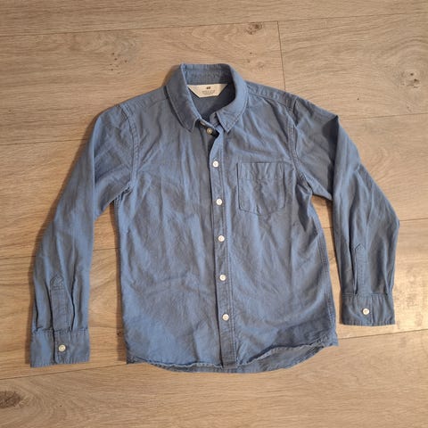 Myydään H&M lyhythihainen kauluspaita, jossa tasku ja napitus edessä.