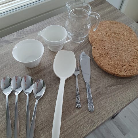 erilaisia käytettyjä keittiövälineitä. silti ihan käyttökelpoisia. YHTEISHINTA KAIKILLE. VAIN NOUTO.