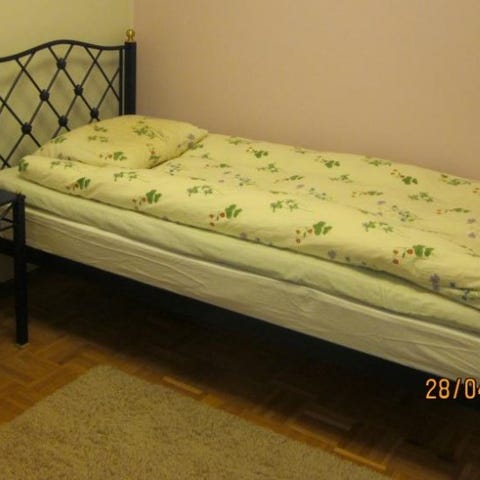 Sängyn päät ovat taitettavat, leveys 61 cm, pituus 160 cm, korkeus 54 cm. Hinta 70e