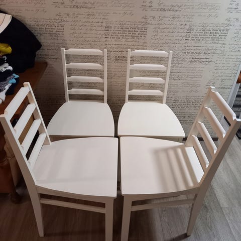 Myynnissä 60- luvun ruokailuryhmästä neljä tuolia, pöytä on myyty.