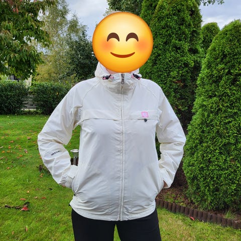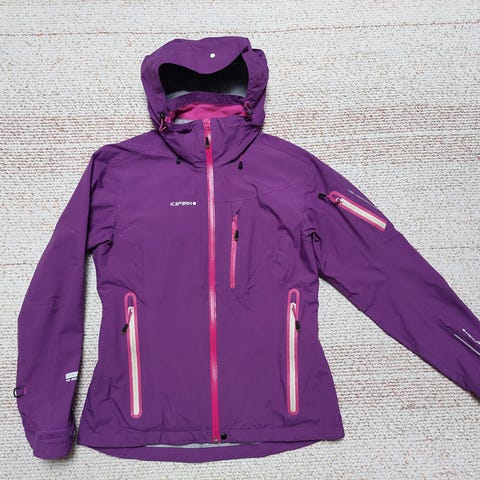 Uudenveroinen koon 38 vedenpitävä takki, verkkovuori. Päällinen 100% polyamidi.