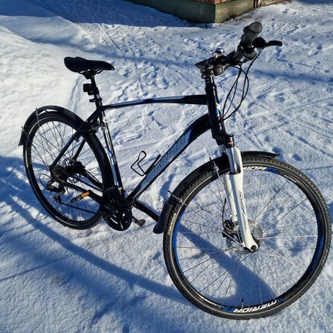 Hyväkuntoinen, 24 vaihdetta, lokasuojat, pumppu, lepuutustapit, sivujalka, pulloteline. Nestelevyjarrut. Ohjauslaakeri vaihdettu just ja tehty etuvanteen rihtaus. Koko L / 21”.