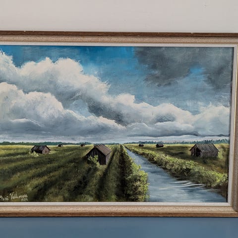 Harri Rantanen öljyväri kankaalle mittoja kehysten päältä korkeus n.63cm leveys n.84cm kuva-ala korkeus n.39cm leveys n.60cm, vanhat kehykset