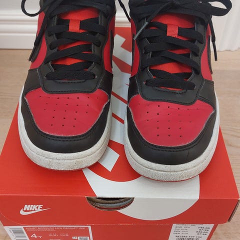 Mustat Nike Court Borough Low Recraft -tennarit. Koko 36. Kenkien suuaukon kangas jalan sisäreunalta kulunut päältä osittain puhki, kts. kuvat. Muuten siistit ja hyväkuntoiset kengät. Pyydettäessä lisää kuvia.