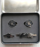 Vintage auto pinssi, kalvosinnapit ja kravattineula