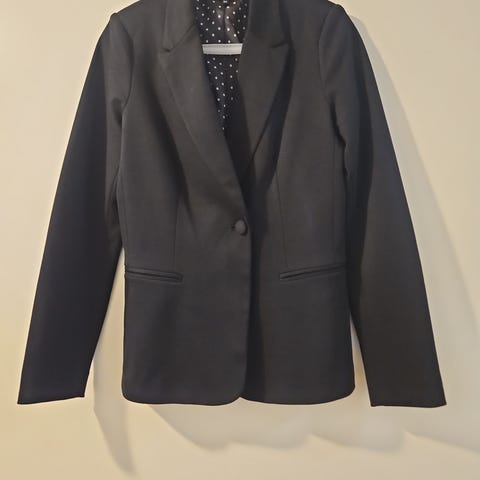 Naisten Your Face-merkin klassinen ja ryhdikäs musta bleiseri/jakku. Puolipitkät hihat ja ollatoppaukset. Ollut päällä vain kerran, joten kunto uuden veroinen.