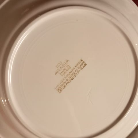 Lautasissa on pientä kulumajälkeä. Yhdessä on pieni särö reunassa.