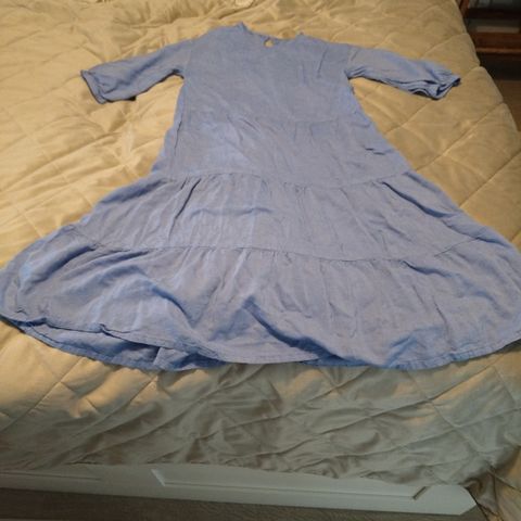 Tyttöjen sininen tunika/mekko. Solkivyö kuuluu asuun. Hihaton.