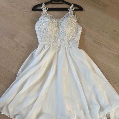 Tyttöjen juhlamekko, koko XS/S. Vanilja värinen, vyötäröllä on koristeellinen vyönauha. Mekon helma on kevyt ja ilmava, sopii erilaisiin juhla tilaisuuksiin, kuten esim. rippijuhliin, valmistujaisiin, kevätjuhliin, hääjuhliin jne. En postita, vain nouto.