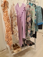 GUGGUU (vaalean punainen mekko röyhelöillä ja bampipaita) 20€/ kpl