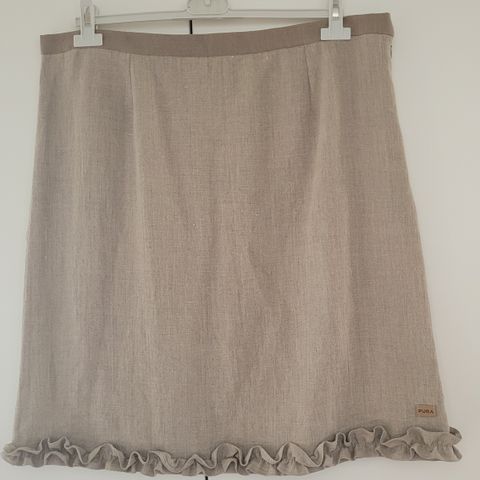 Pitkä (92 cm) sininen pellavahame, jossa halkio edessä keskellä (n. 45 cm).