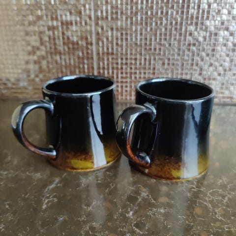 Arabia Okra tuopit 5kpl 60-luvulta. Erittäin hyvässä kunnossa. Vaihtelevat sävyt. Korkeus 11,5 cm, suuaukon halkaisija 8,5 cm ja tilavuus 0,5l. Kaikissa pohjassa kaiverrus NT ja neljässä Arabian leima.