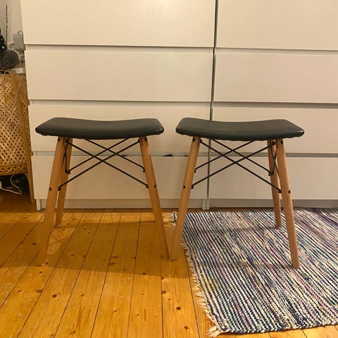 Keinonahkainen Jakkara, 2 Eri Väriä - Musta