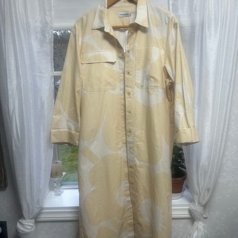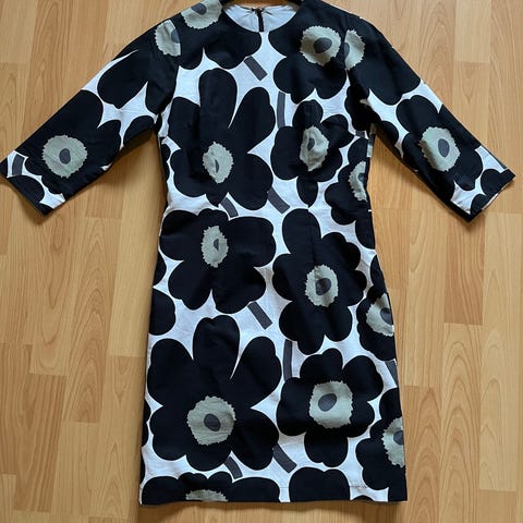 Käyttämätön marimekon mekko. Koko väljä S, vyöllä sopii myös XS kokoiselle. Mekossa myös taskut. Hihoissa napit. Materiaali 100% silkkiä. Ei enää myynnissä joten ainutlaatuinen mahdollisuus ostaa uutena. Pakkaan huolella kenkälaatikkoon rypistymisen ehkäisemiseksi.
