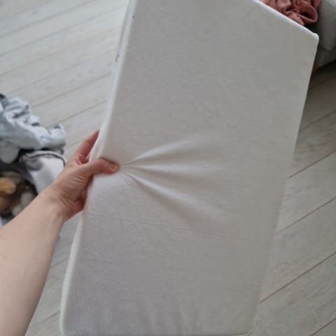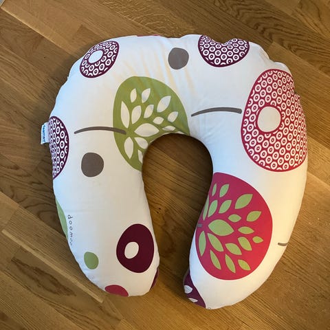 Hyväkuntoinen tyyny. Tyyny oli noin kaksi kuukautta vauvan käytössä. Vaahtomuovi on vähän painunut aukon toiselta laidalta, mutta tyyny tukee vielä hyvin ja pää pysyy aukossa paikoillaan. Helposti käsinpestävä tyyny.